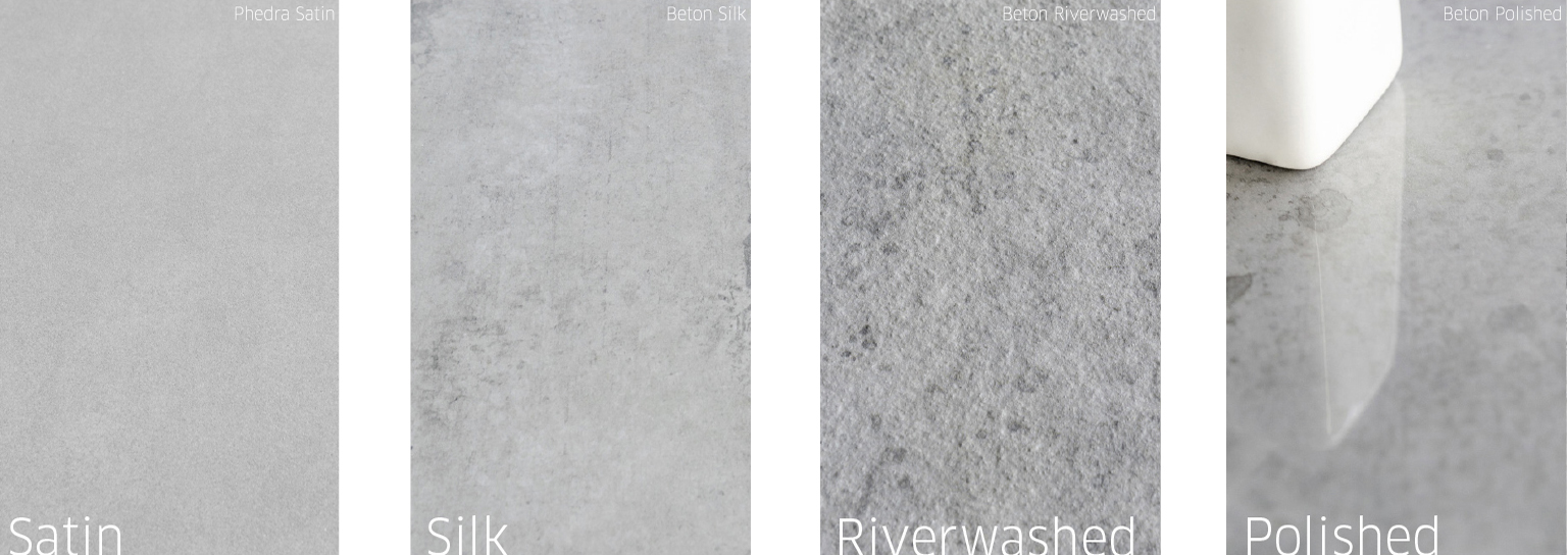 - Polished. Brillante con un reflejo perfectamente lineal que confiere profundidad y elegancia al material.