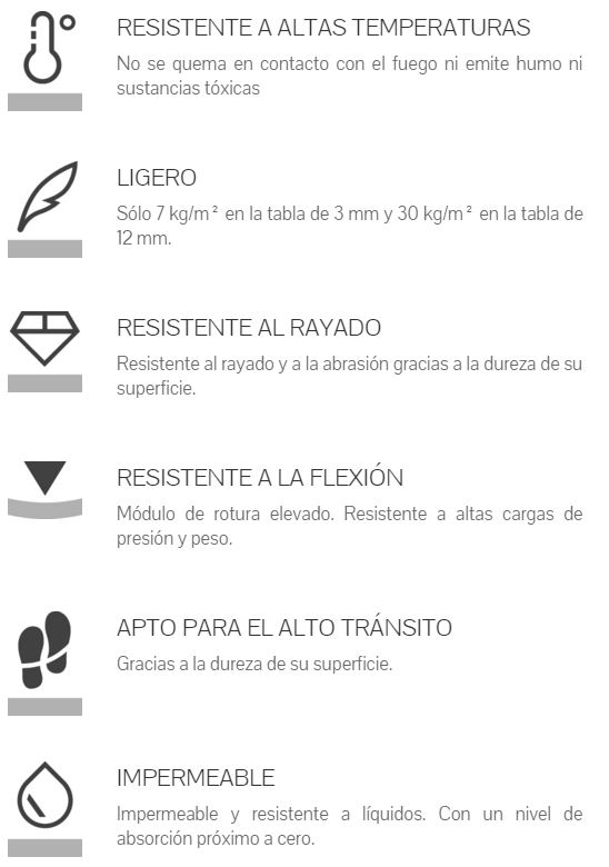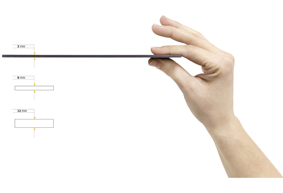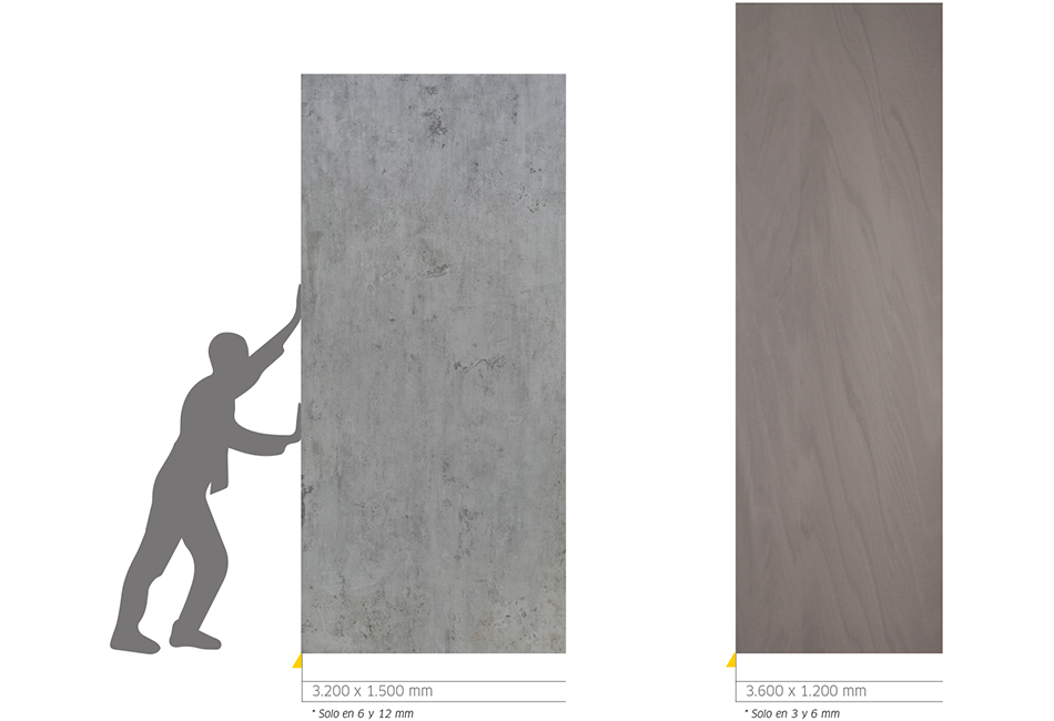 Para mobiliario o revestimientos interiores, se recomienda utilizar los 3 mm; para pavimentos (interiores y exteriores) y revestimientos exteriores (como fachadas ventiladas) los 6 mm; mientras que los 12 mm se reservan para las aplicaciones más exigentes del producto, como encimeras de cocina.